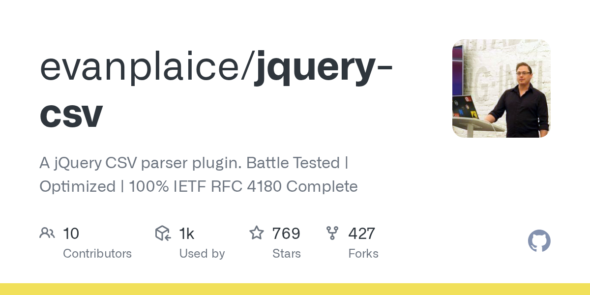 GitHub - evanplaice/jquery-csv: A jQuery CSV parser plugin. Battle Tested | Optimized | 100% IETF RFC 4180 Complete